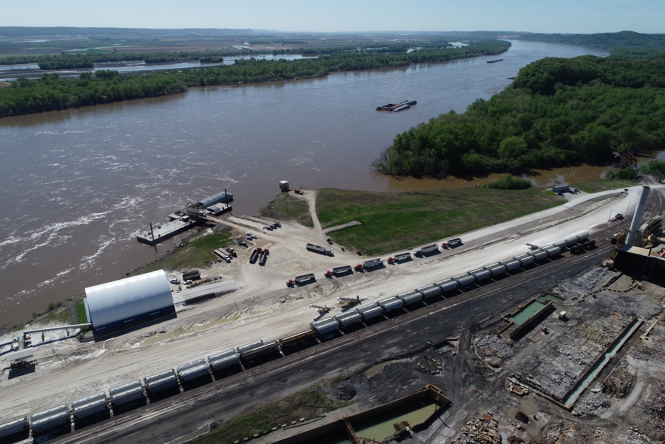 Located on the shipping lanes of the Mississippi River, the site has been utilized since the 1700s as a port. With its easy access for barge loading and offloading and the site’s proximity to early lead mines in adjacent Washington County, under early French ownership the port was utilized to ship lead cannonballs and shot to Europe to support Napolean’s army. Today, the port ships frac sand, grain, and other bulk commodities.